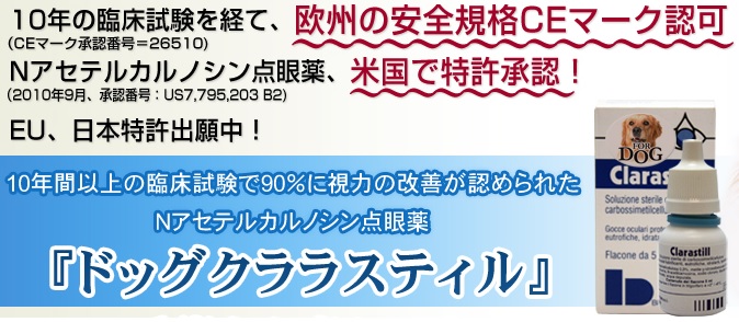 クララスティルの成分はNアセテルカルノシンという抗酸化作用のある成分でこれは人用の白内障対策の点眼薬にも使用されている成分です。